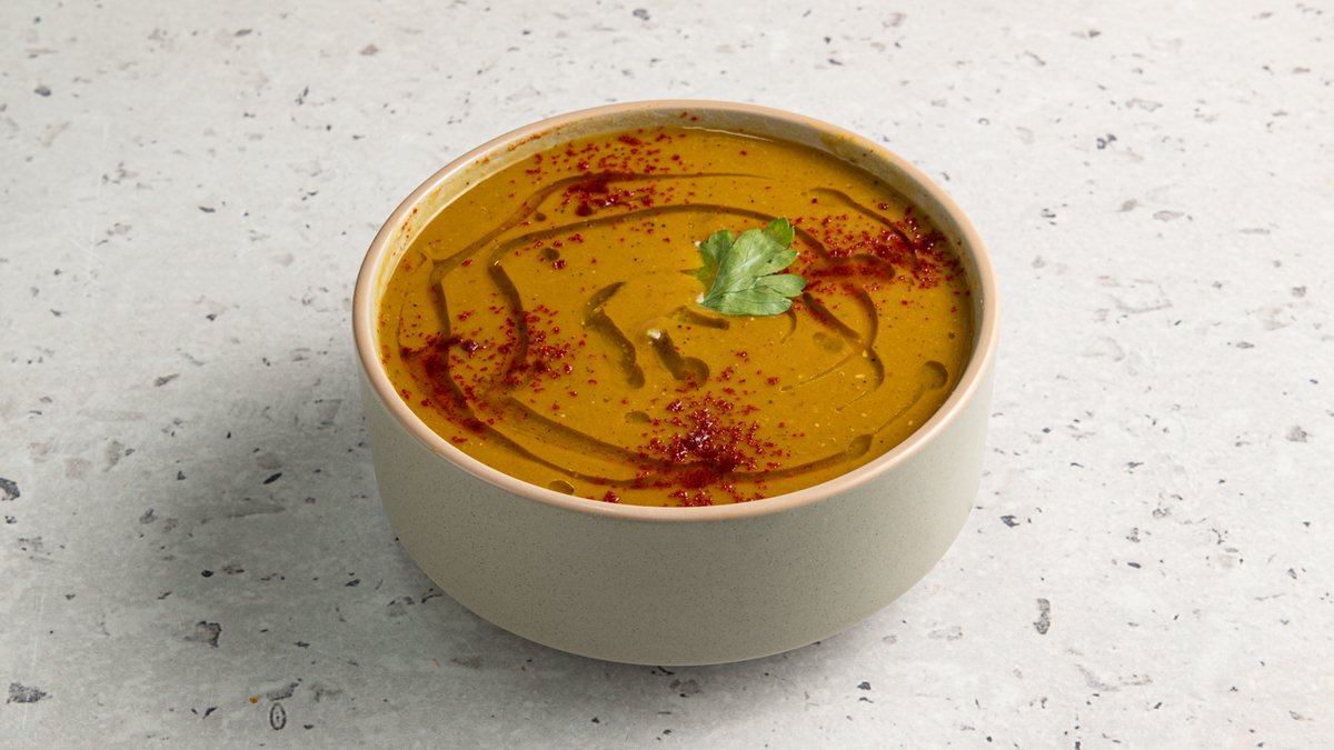 תבשיל מסורתי עשוי עם זוג ביצים מוגש עם לחם לבחירה, טחינה ומלפפון חמוץ