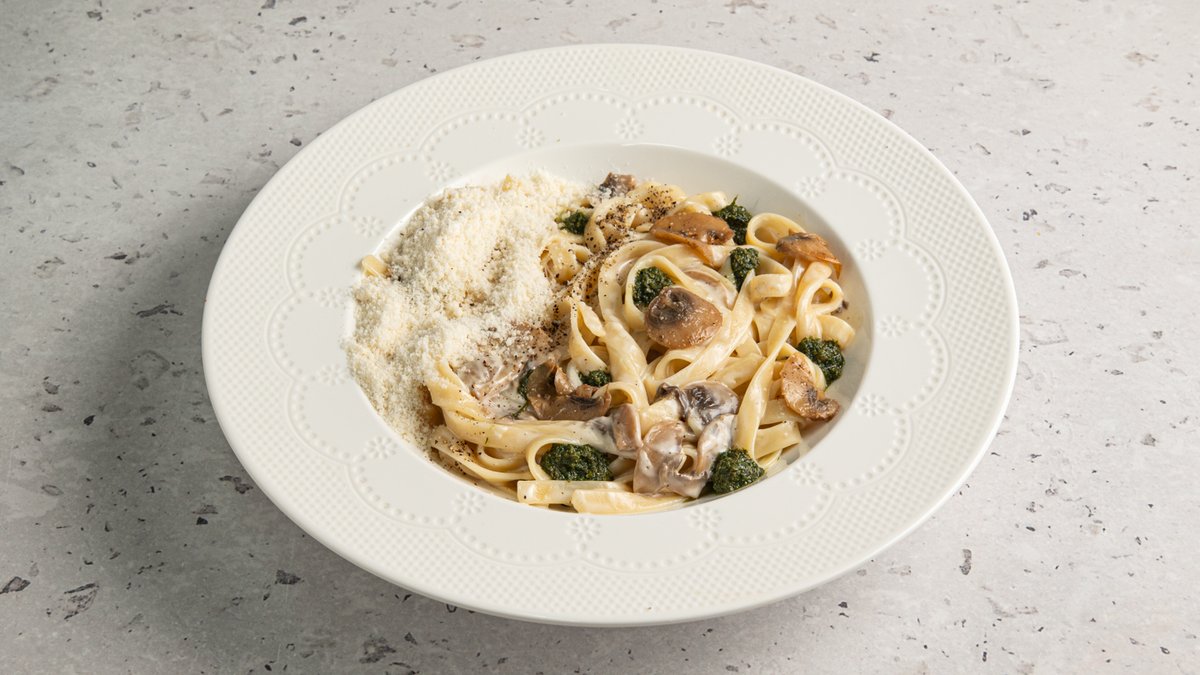 פסטה פטוצ'יני ברוטב שמנת עם פטריות מוקפצות ונגיעות פסטו