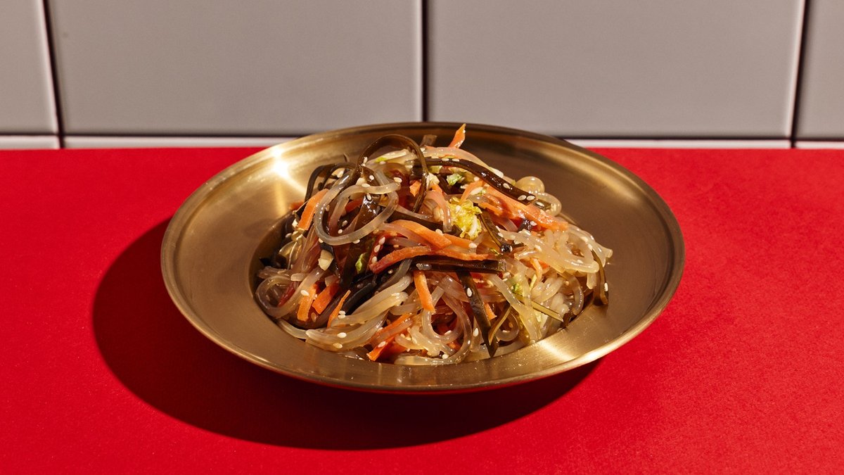 אטריות קוריאניות שקופות (מבוסססות עמילן בטטה) ברוטב סויה שומשום, גזר, אצת קומבו וכרוב סיני | אחת המנות האהובות בקוריאה! (אטריות קרות)