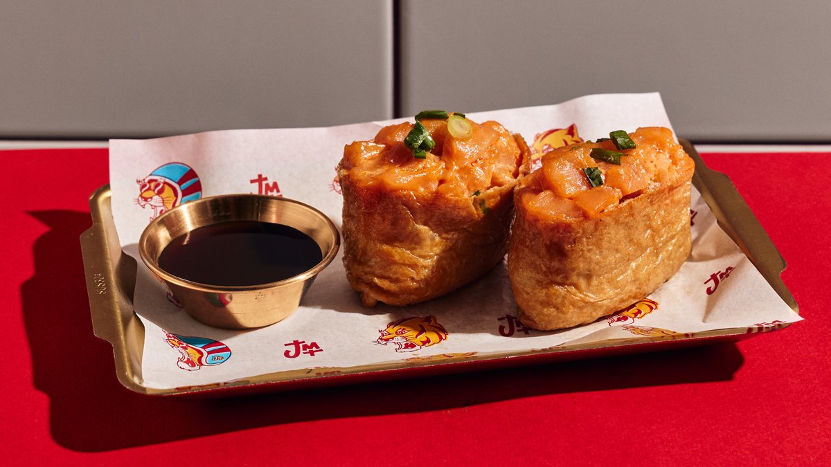 טרטר טונה אדומה , בצל ירוק ואיולי גוצ'וג'אנג פיקנטי, אבוקדו, סלק, מלפפון, לבבות חסה, צנון יפני מוחמץ, עירית (לא ניתן להוציא בצל ירוק)