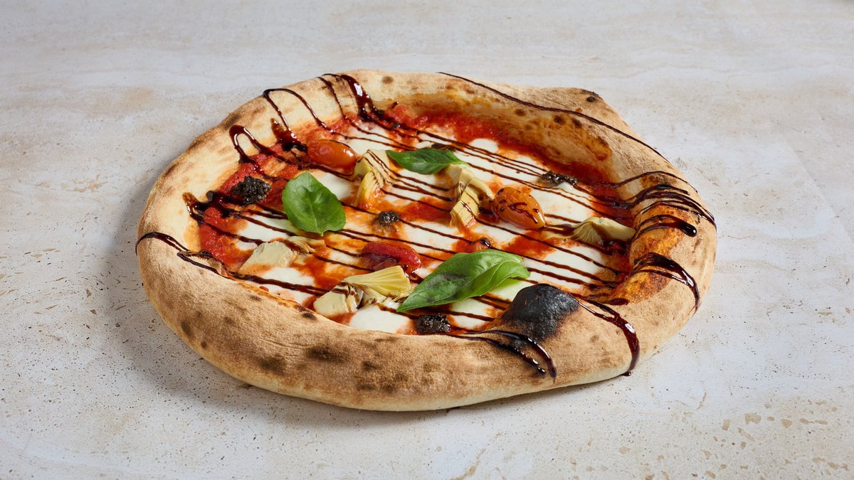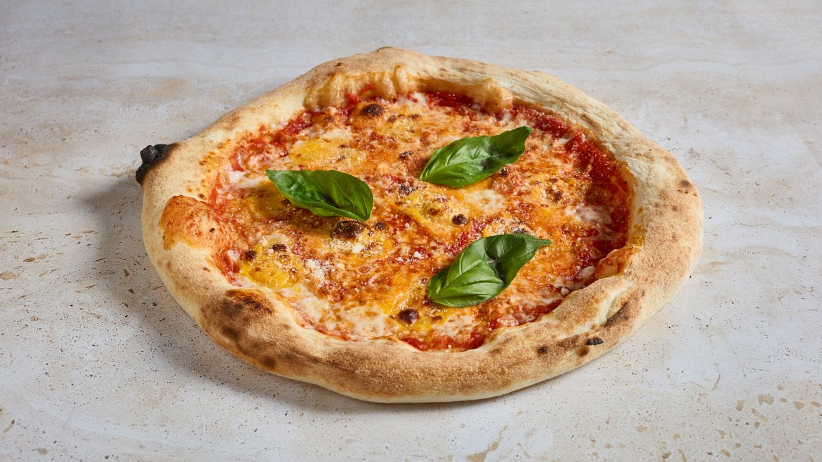 הפיצה הקלאסית שלנו בתוספת פפרוני איטלקי, שום קונפי, צ׳ילי חריף ועלי בזיליקום טריים