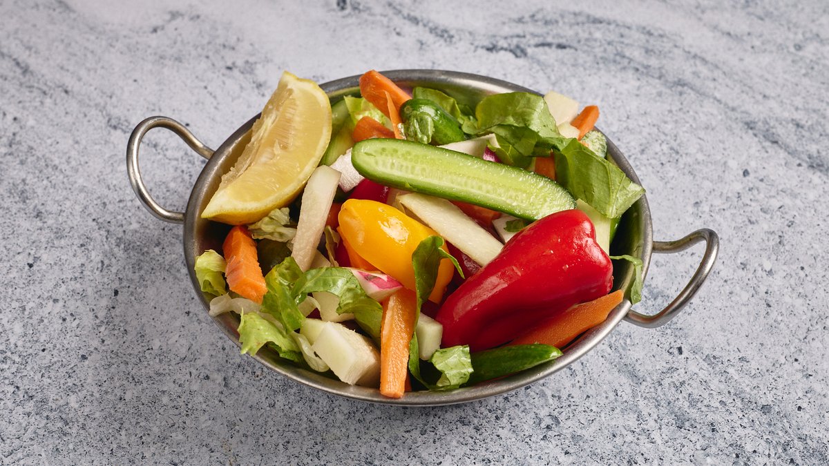 קולורבי, שרי תמר, בייבי פלפל, צנונית, גזר, מלפפון בלאדי, שמן זית, מלח גס, לימון טרי.