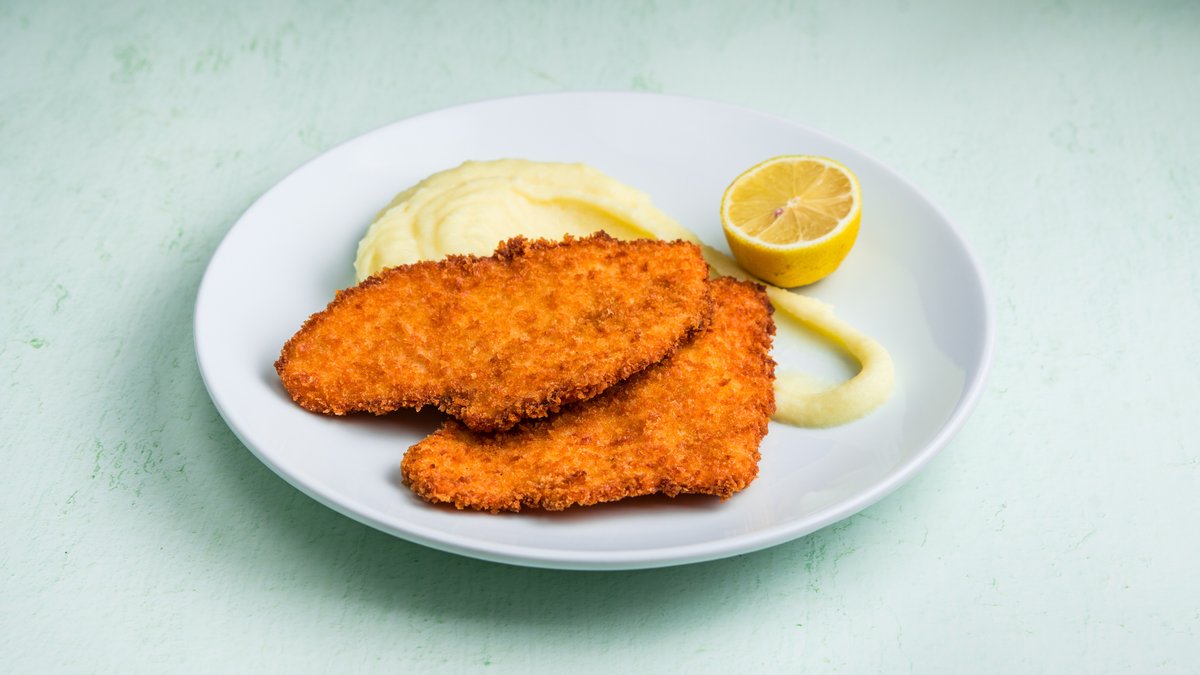 בציפוי פריך מוגש עם פירה