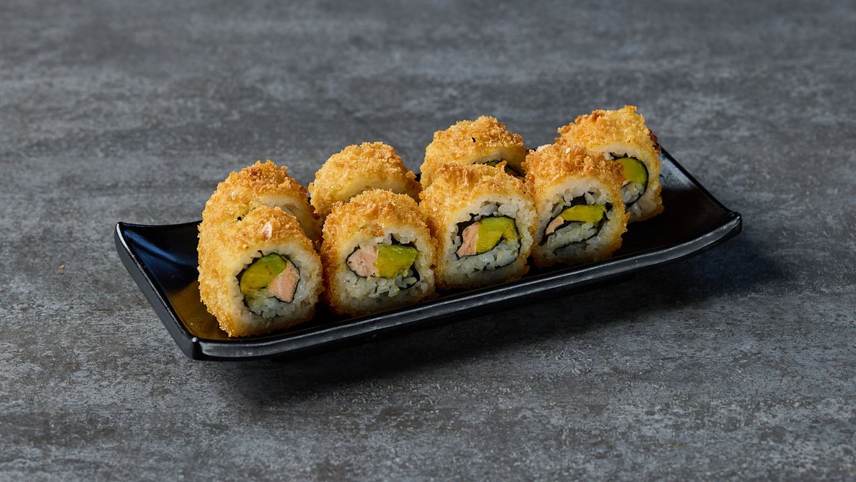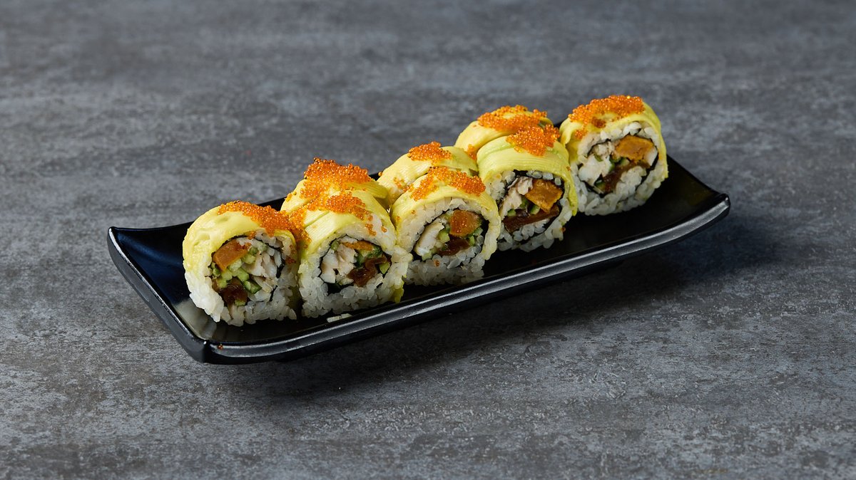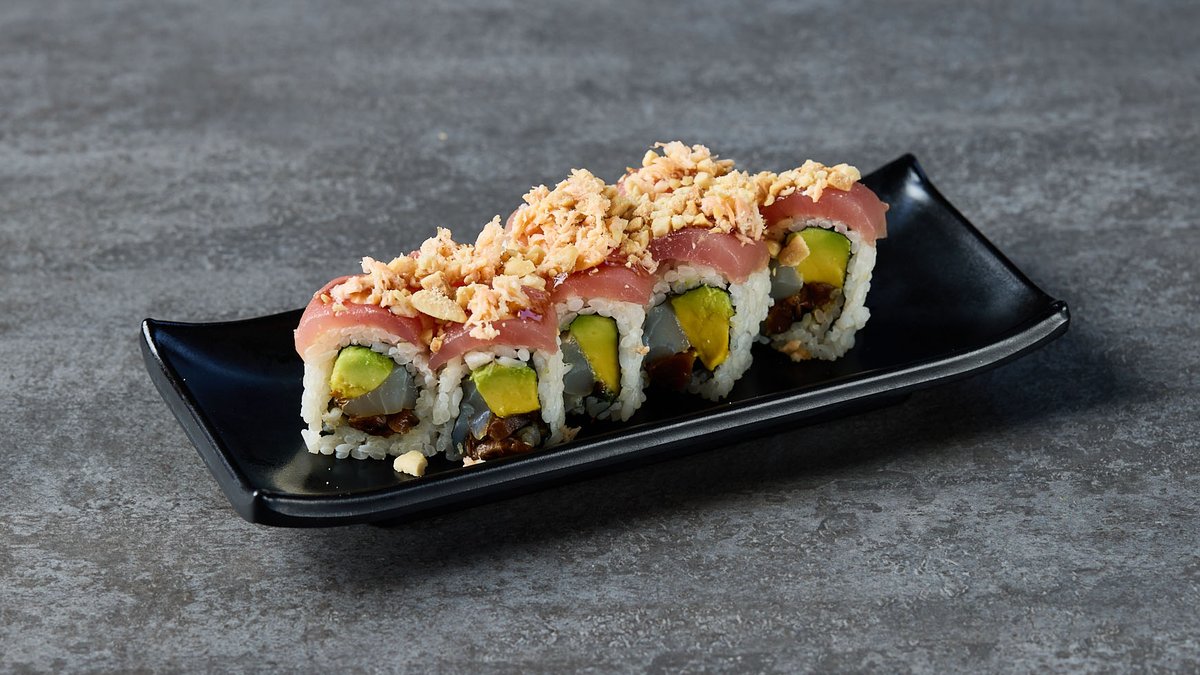 עם אבוקדו, בצל ירוק ודג לבחירה בציפוי פנקו