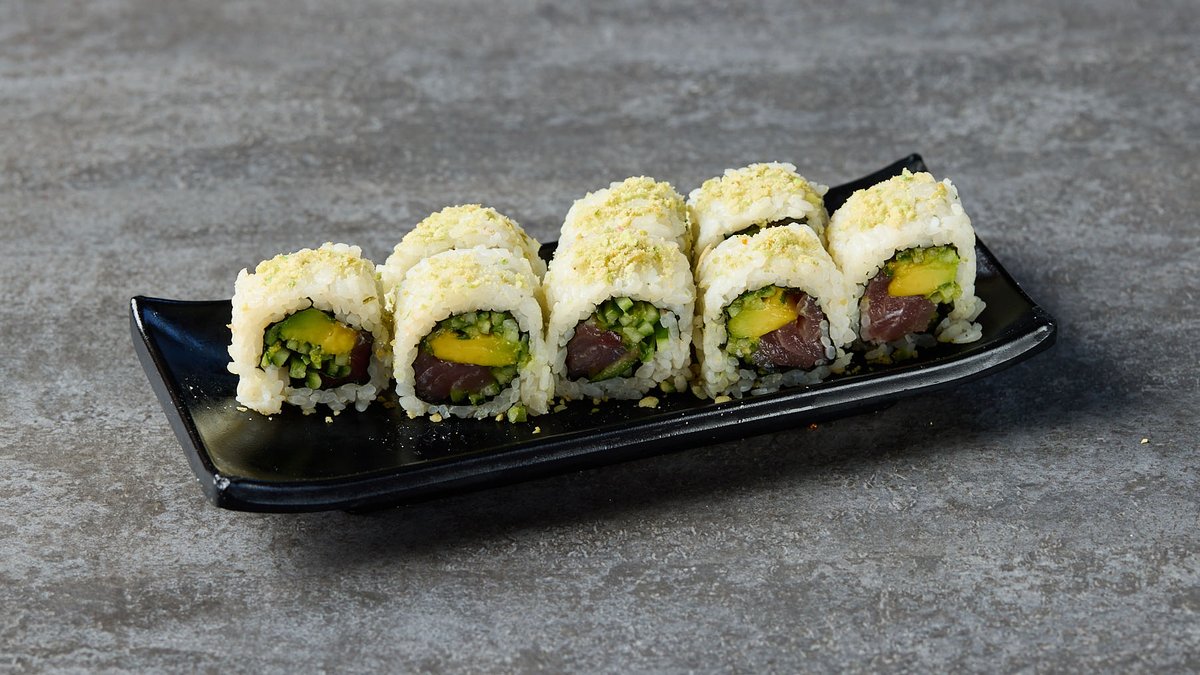 טונה אדומה, אבוקדו ומלפפון, במעטפת אפונת וואסבי - מנה חריפה