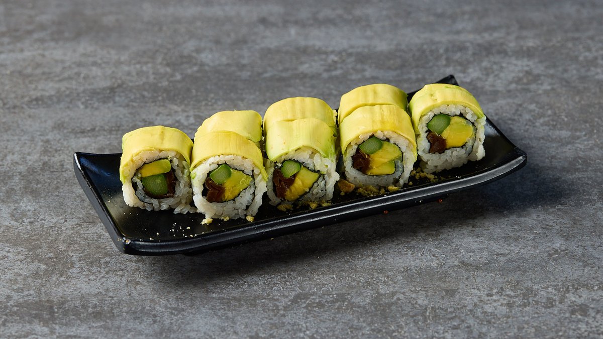 רול מלפפון ללא אורז במילוי אבוקדו, אספרגוס, קנפיו ובטטה