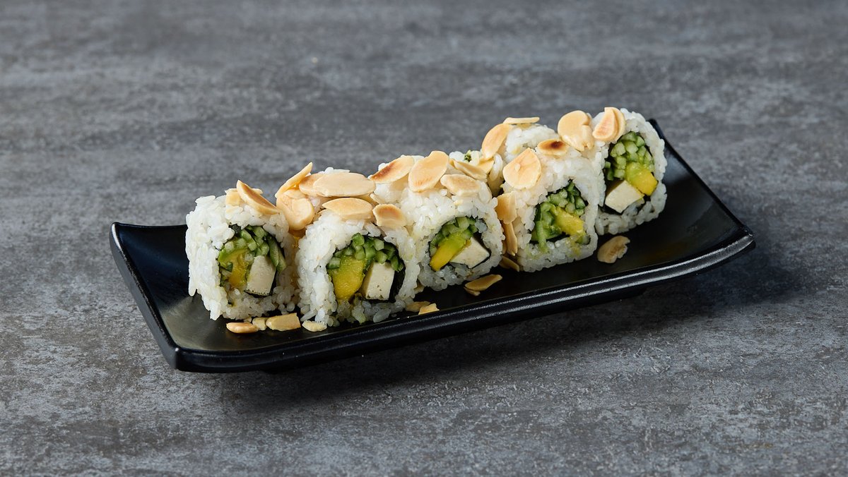 טופו, אבוקדו, אושינקו ובצל ירוק במעטפת שקדים
