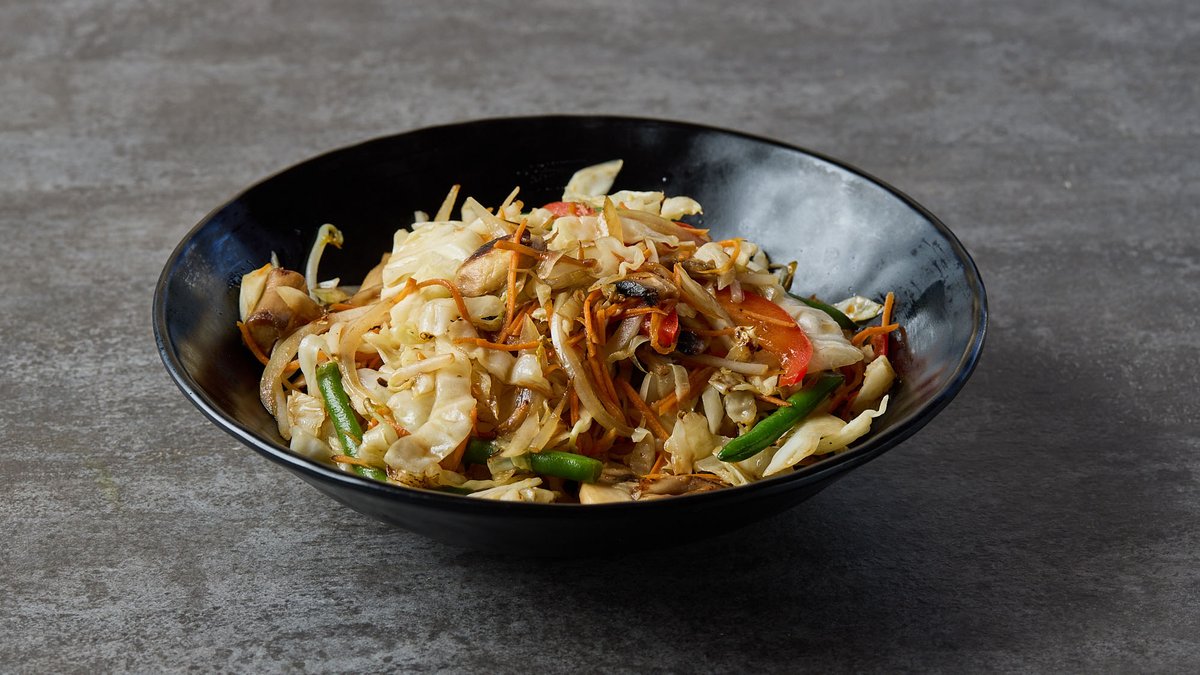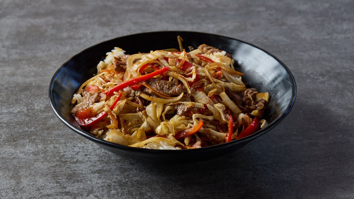 נודלס / אורז מוקפץ עם פטריות / בקר / עוף / טופו, בצל, כרוב, גזר, גמבה, נבטים ונטיפי ביצה ברוטב בחרו את הרוטב - רוטב חריף או רוטב נוצ'י