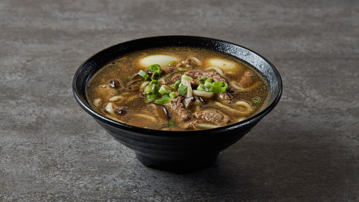 טופו / עוף / בקר בציר בשרי / צמחוני עם ביצה קשה, נבטים, אטריות דורום, פטריות שיטאקה ובצל ירוק