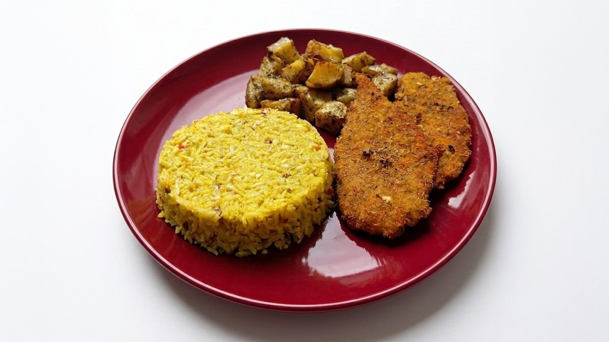 שניצל עוף מוגש עם 2 תוספות לבחירה