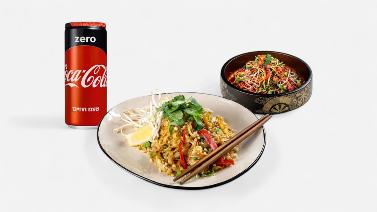 מוקפץ אטריות אורז, רוטב פאד תאי מסורתי, גמבה, נבטים, גזר, כרוב, בצל ירוק, כוסברה ובוטנים (מכיל גלוטן) + ראשונה + שתייה
