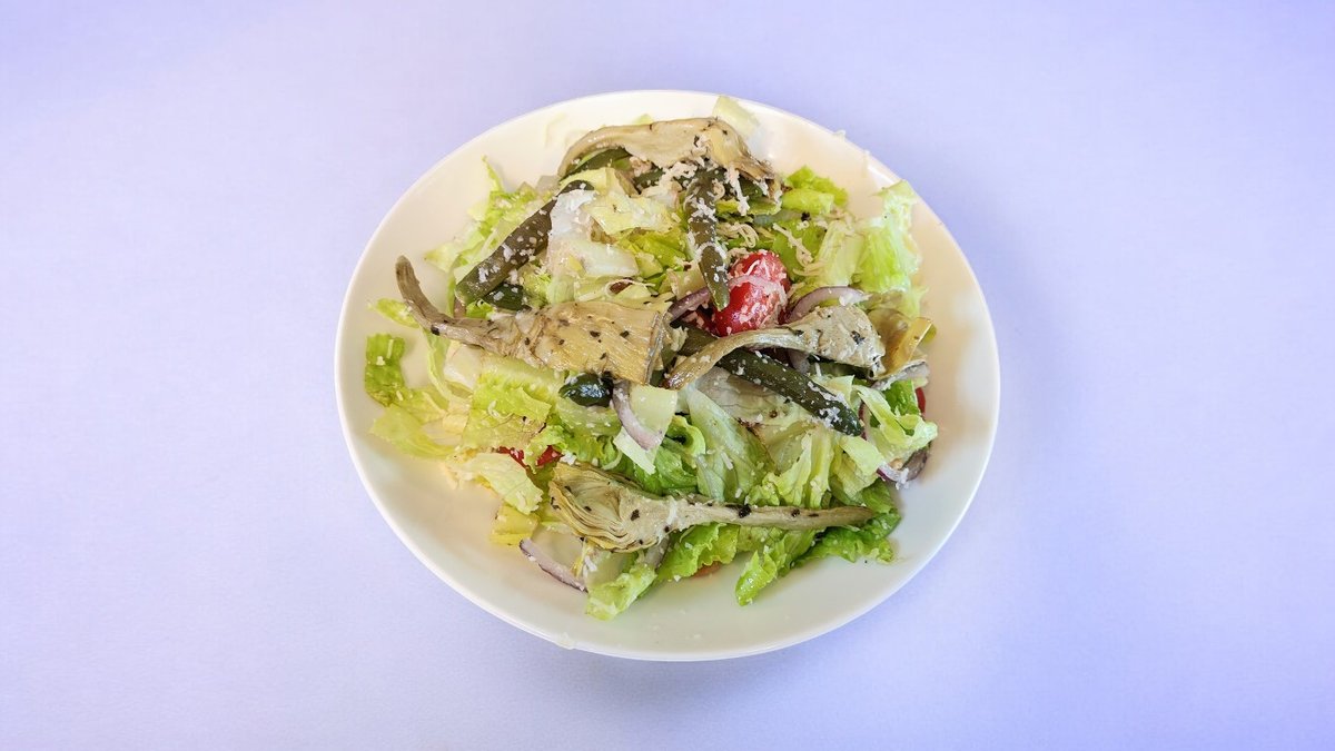 לבבות חסה רומית, לבבות ארטישוק צלוי, פרמז׳ן, עגבניות שרי תמר, בצל סגול פרוס דק, קרוטונים, שעועית ירוקה מוקפצת וצנוברים ברוטב ויניגרט חרדל כמהין | 750 מ״ל
