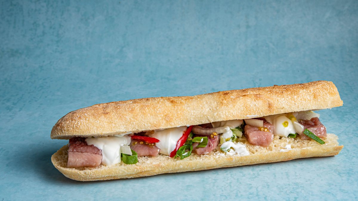 הכריכים שלנו מגיעים בלחמניית באגט חצוייה לשניים.