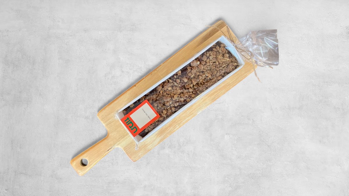 עוגת שוקולד עשירה, ללא גלוטן, טבעונית וללא סוכר מעובד ממותקת במייפל ותמרים, על בסיס אגוזי לוז קלויים, עם שוקולד קאליבו בלגי מריר, קרם קוקוס, קקאו הולנדי ופטל מיובש. מתוק עמוק ומאוזן ללא רגשות אשם. ✅ טבעונית לחלוטין ✅ ללא תוספת סוכר ✅ ממותקת במייפל ותמרים ⚠️ מכיל אגוזים