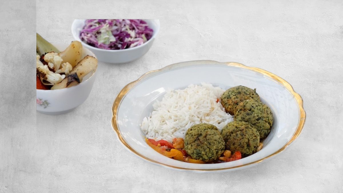 קציצות טופו בתבשיל חריימה עשיר של עגבניות, פלפל שושקה וחומוס, עם שתי תוספות לבחירה (אורז ארומטי , קיצ'רי או אנטיפסטי ירקות מהמשק) . מוגש עם סלט כרוב רענן בשמן זית ולימון. מנה טבעונית עם עומק טעם ים־תיכוני. ✅ טבעוני לחלוטין ✅ ללא גלוטן ✅ חרפרף במידה