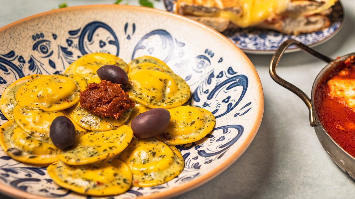 בחרו סוג רביולי ורוטב מוגש עם פרמז׳ן