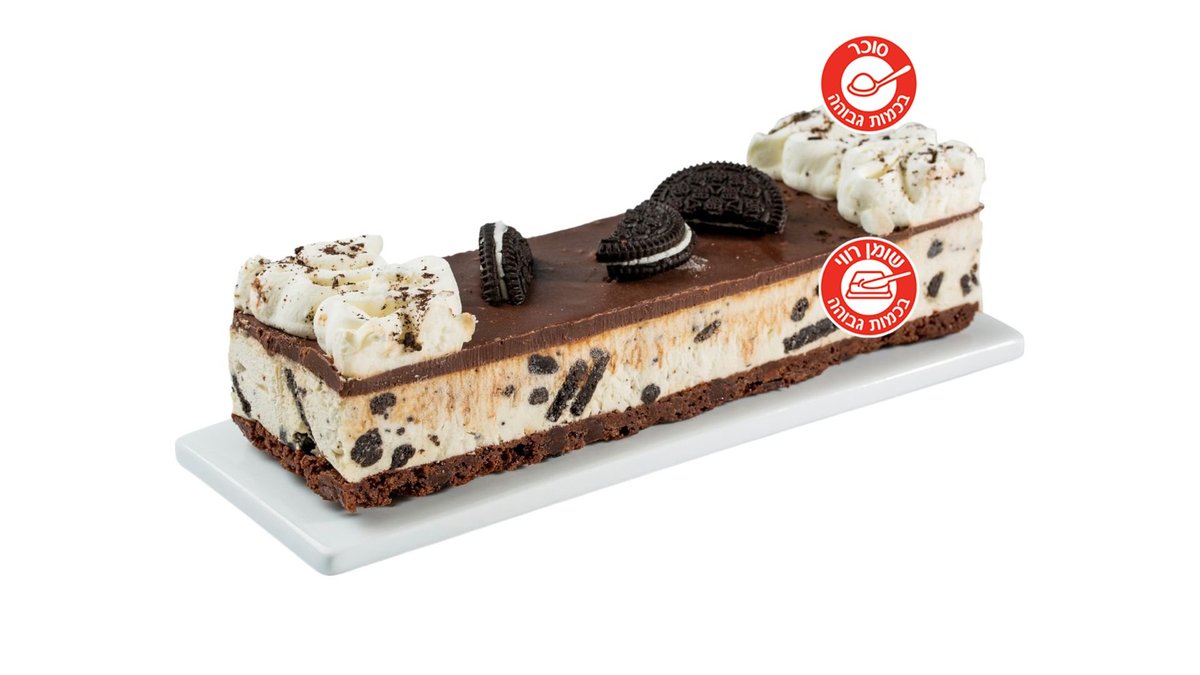 תחתית של בראוניז, קרם אוראו בציפוי גנאש שוקולד מריר ובקישוט עוגיות אוראו | מגיע קפוא