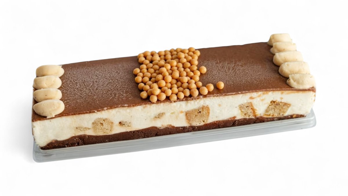 שכבות ביסקוויטים, קרם וניל ושוקולד קריספי בציפוי עדין של גנאש שוקולד חלב | מגיע קפוא