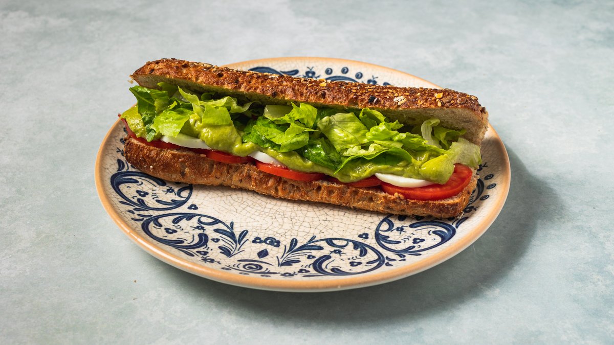 סלט אבוקדו, ביצה קשה, חסה ועגבניה
