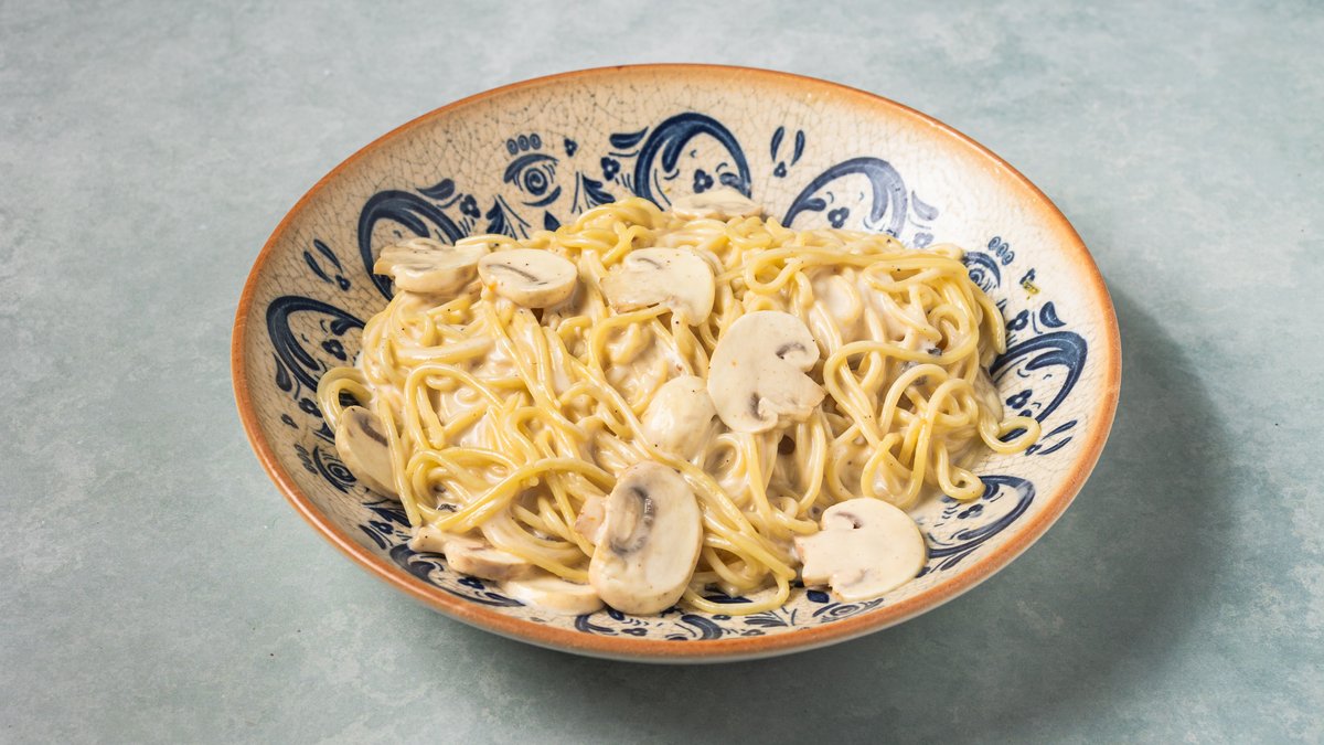 רוטב שמנת, פטריות שמפיניון ויין מוגש עם פרמז׳ן