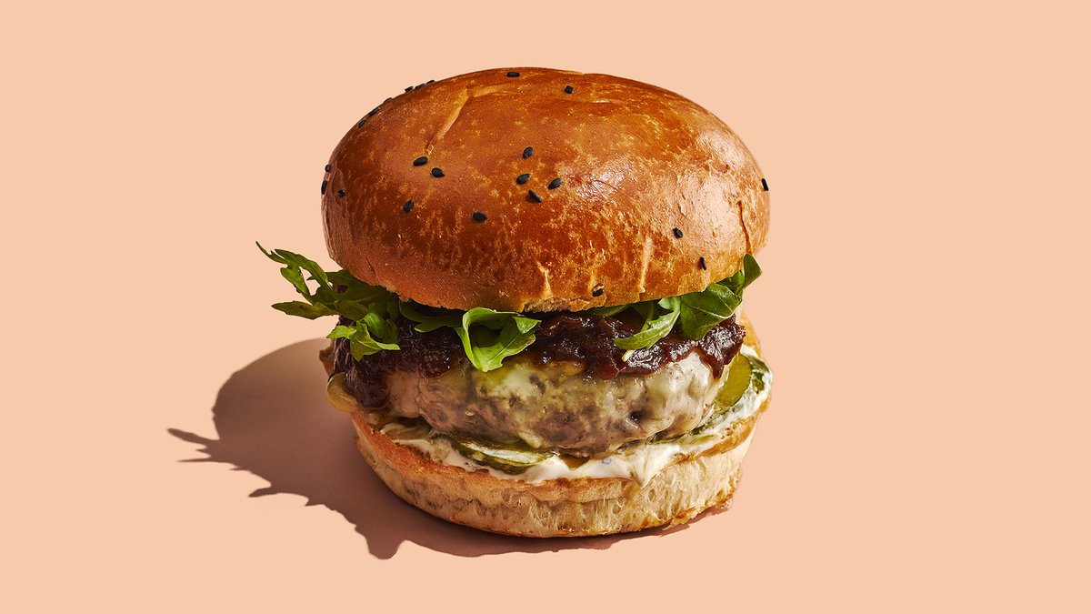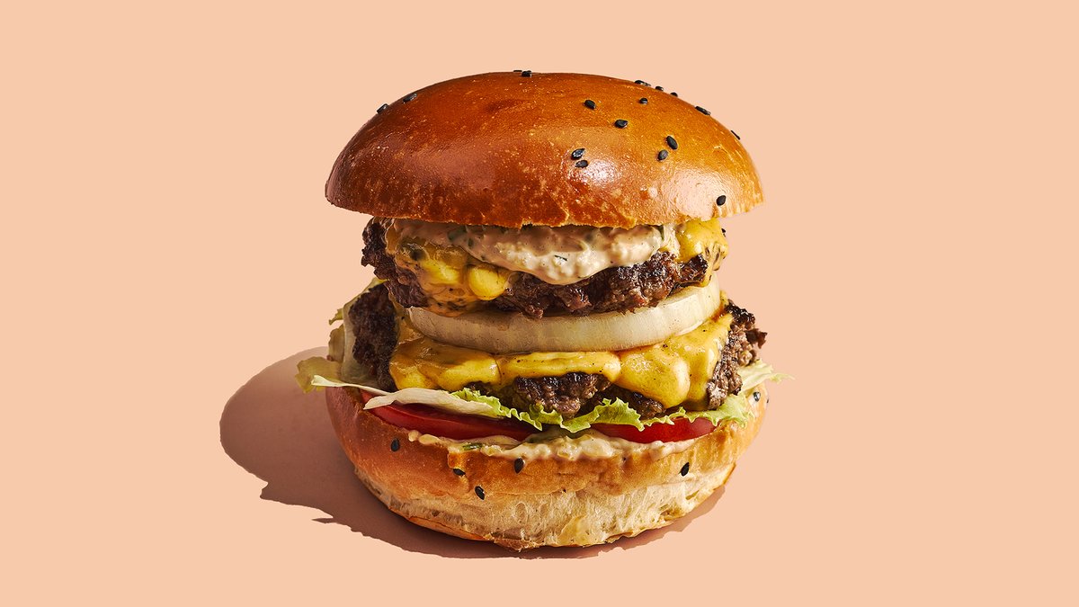 שני קציצות 100 גרם, אלף איים, גבינת צ׳דר, בצל מטוגן, רוטב אוטוטו
