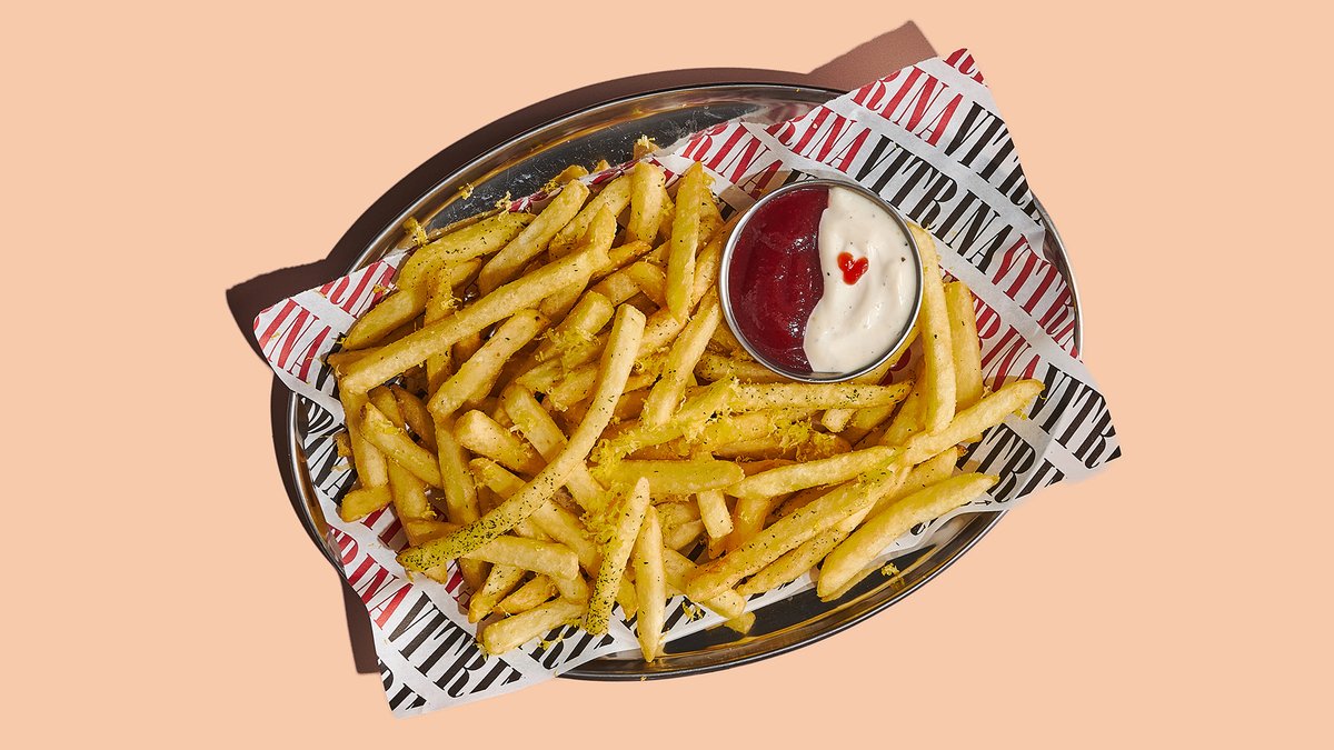 צ'יפס, גרידת לימון, בתיבול יחודי של המקום
