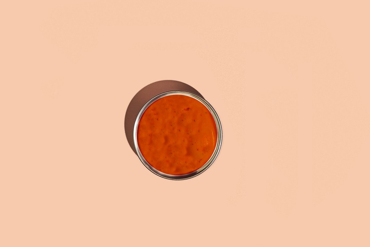 מיונז, צ'ימיצ'ורי, בצל מוחמץ, עגבניות על הגריל ופלפלים חריפים