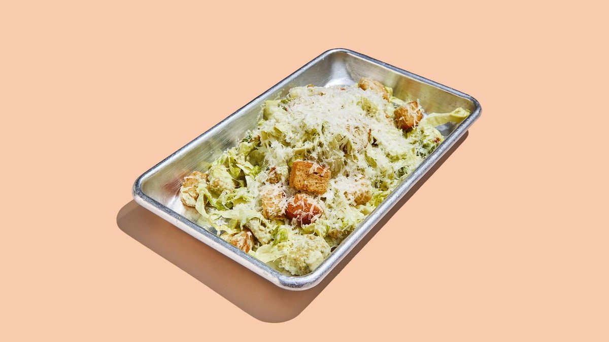 עוף קריספי פיקנטי, רוטב קיסר, סלט קיסר ופרמז׳ן