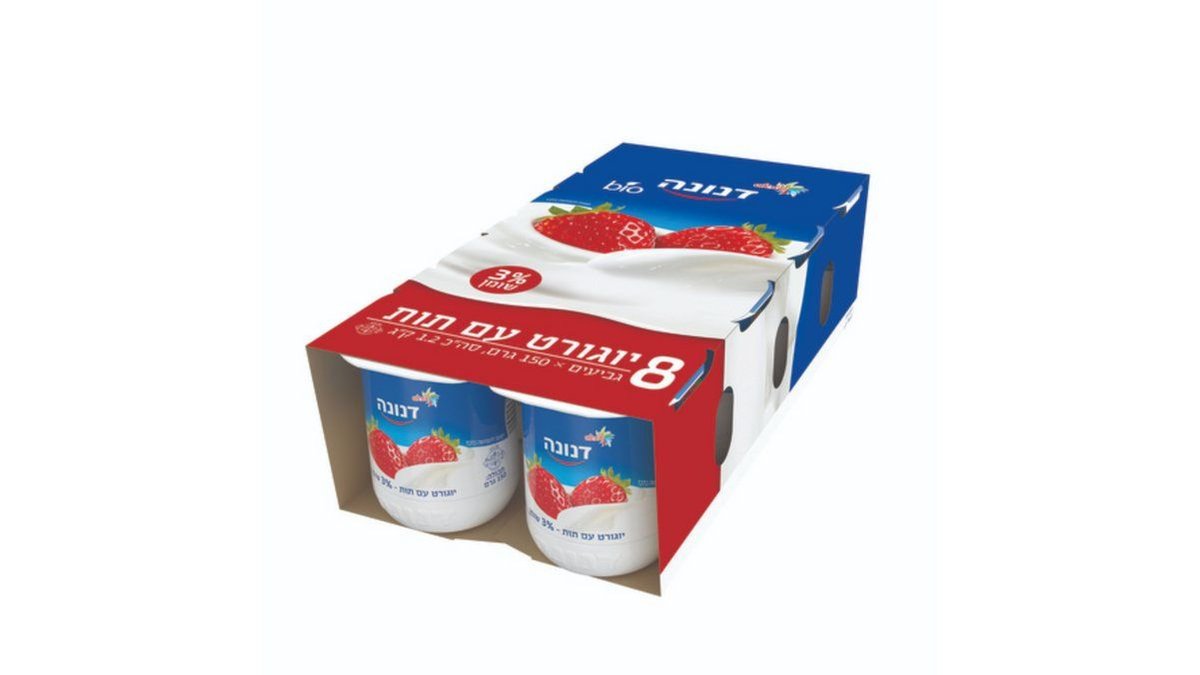 דנונה מארז יוגורט תות 3% | 8 גביעים