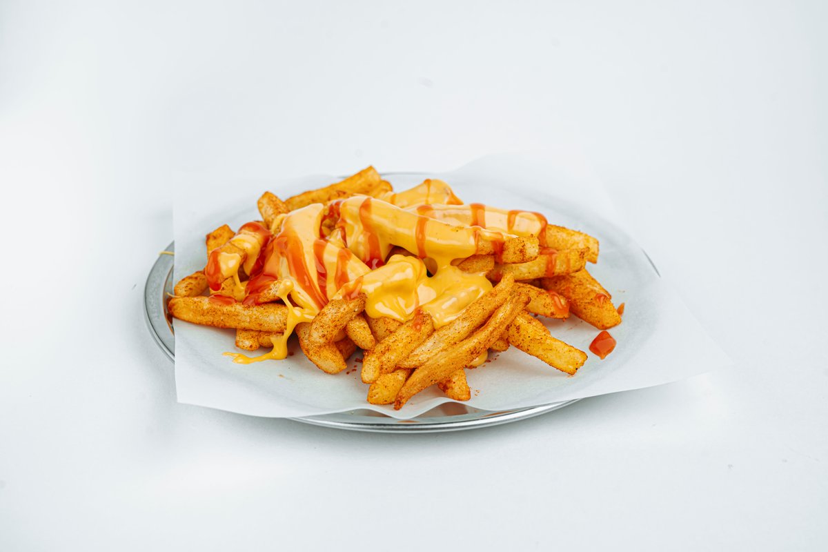 160 gr can əti, karamelizə olunmuş soğan, cheez whiz (əridilmiş çedar pendiri), acılı sriraça sousu (acılı)
