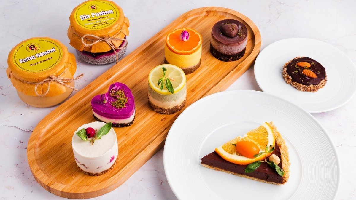 Vegan və glütensiz şirniyyat və çərəzlər, şəkərsiz az kalorili sağlam desertlər.