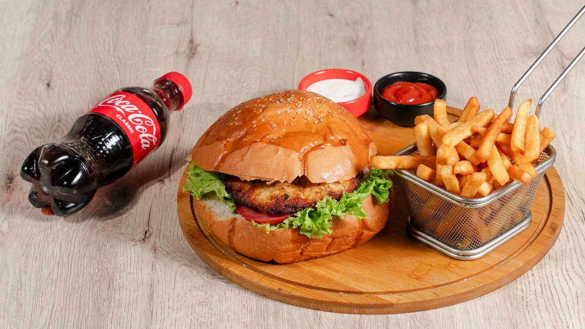 Toyuq burgeri və Kartof Fri Coca-Cola® (500 ml) ilə