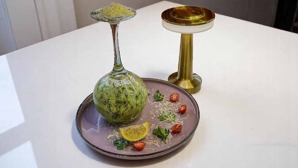 Köz bibər, badımcan, quzu əti, mozzarella pendiri