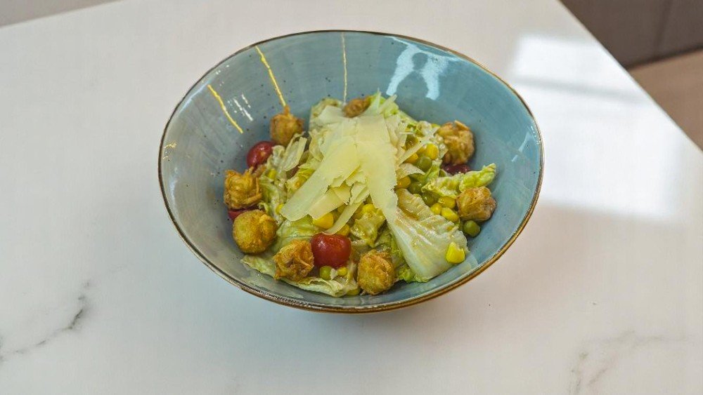 Aysberq kahısı, qarğıdalı, yaşıl noxud, çerri pomidoru, xiyar