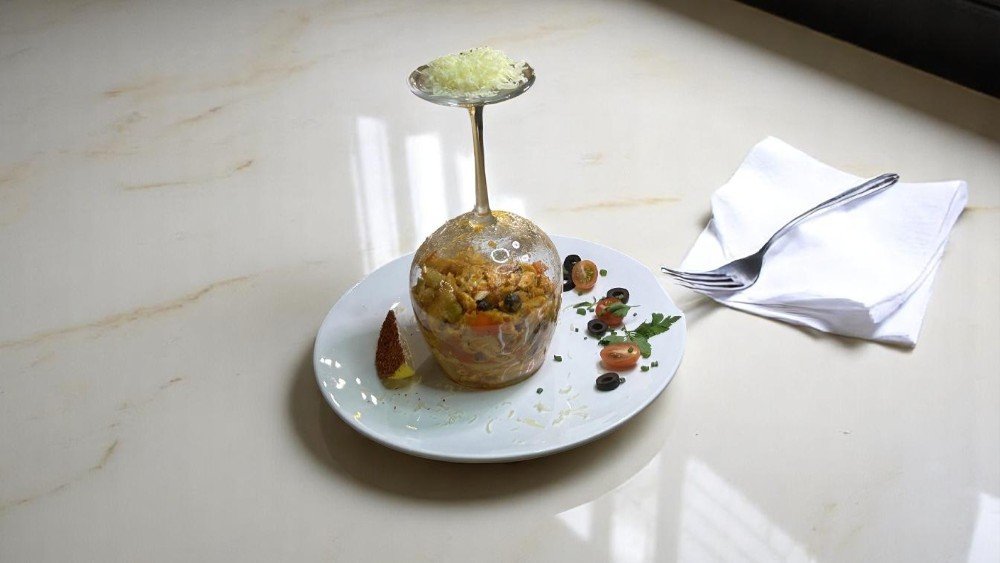 Quzu qiyməsi, düyü,nanə, tomat sousu