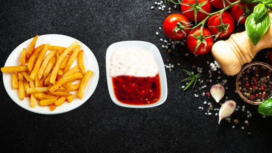 Kaşarlı tost + kartof fri + ketçup və mayonez
