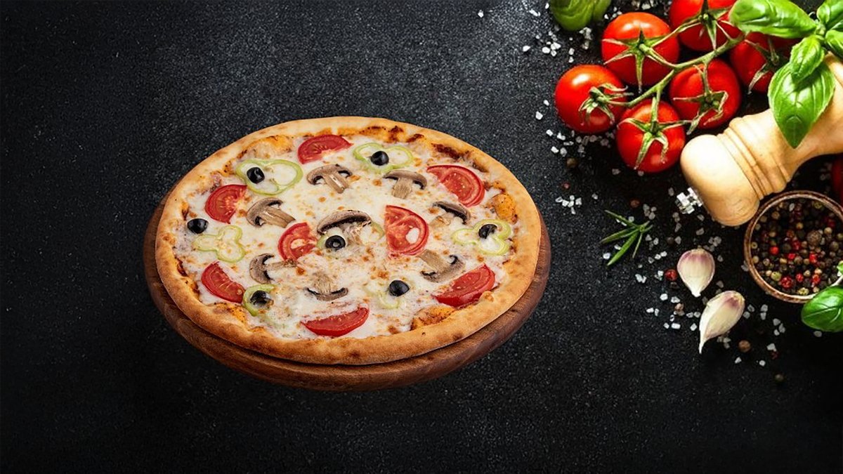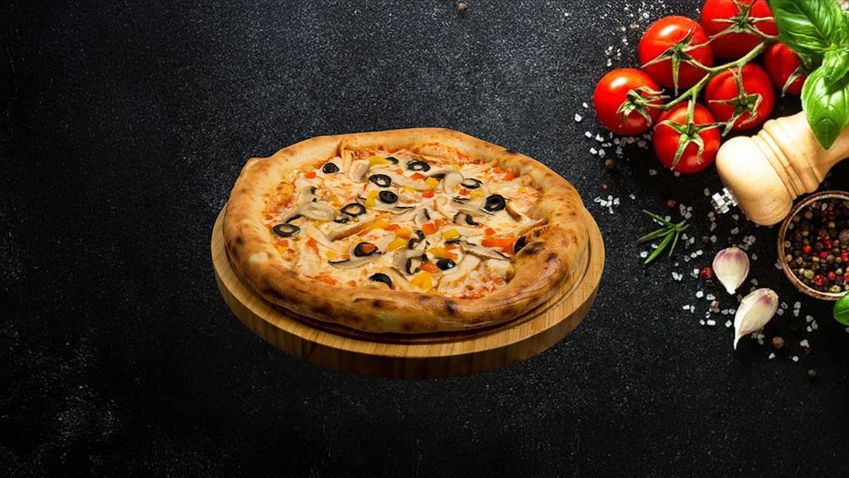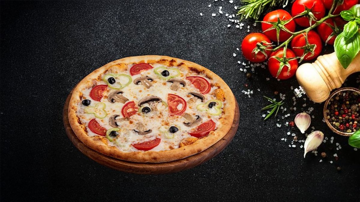 Mozzarella pendiri, pomidor, göbələk, rəngli bibər, zeytun