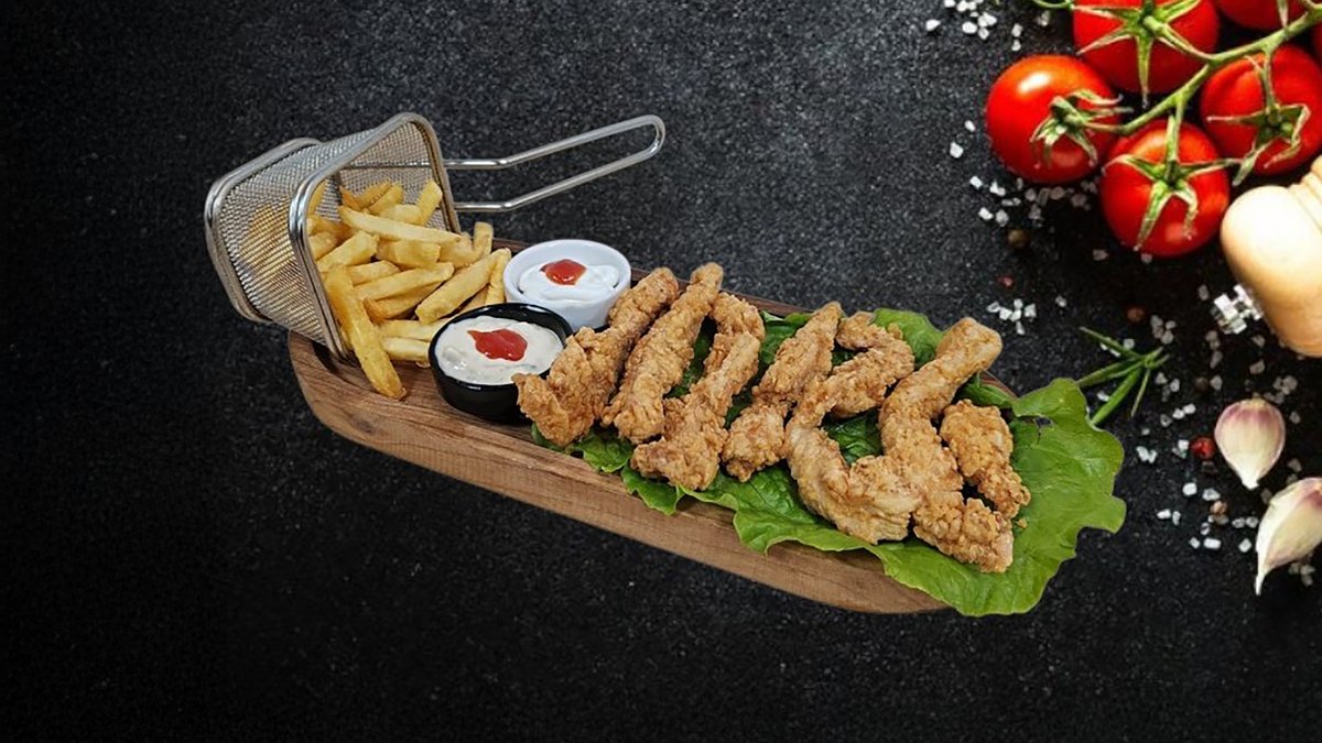 Chicken Burger 2 ədəd, Beef Burger 2 ədəd, Kartof fri 2 ədəd, Strips 6 ədəd, Mayonez, Ketçup, Pendir və BBQ Sousu