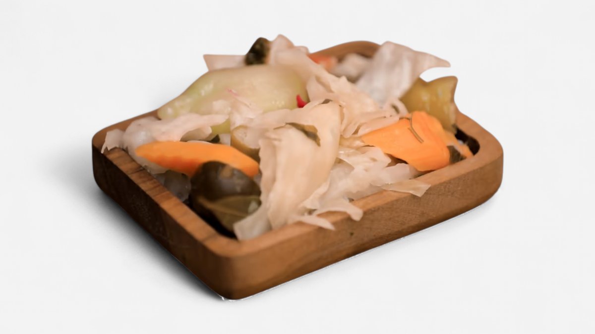 Kartof, kök, toyuq filesi, mayonez, turşu xiyar, yaşıl noxud, xiyar, yumurta