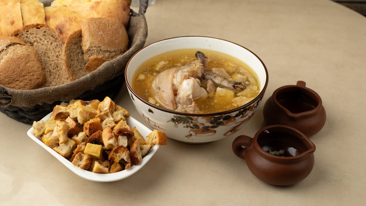 Xəmir, dana əti, bulyon, ədviyyatlar