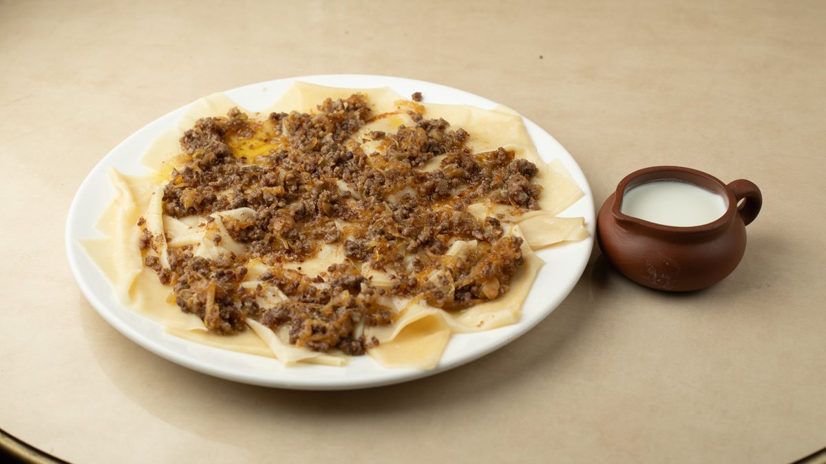 Xəmir, dana ətindən qiymə, ədviyytalar