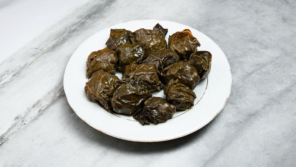 Dana əti, düyü, üzüm yarpağı, ədviyyatlar