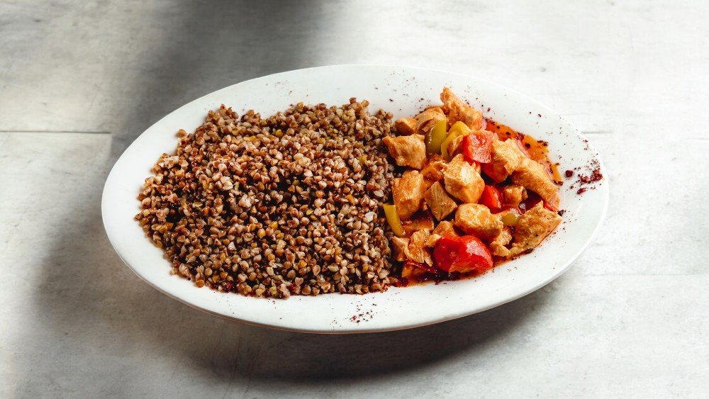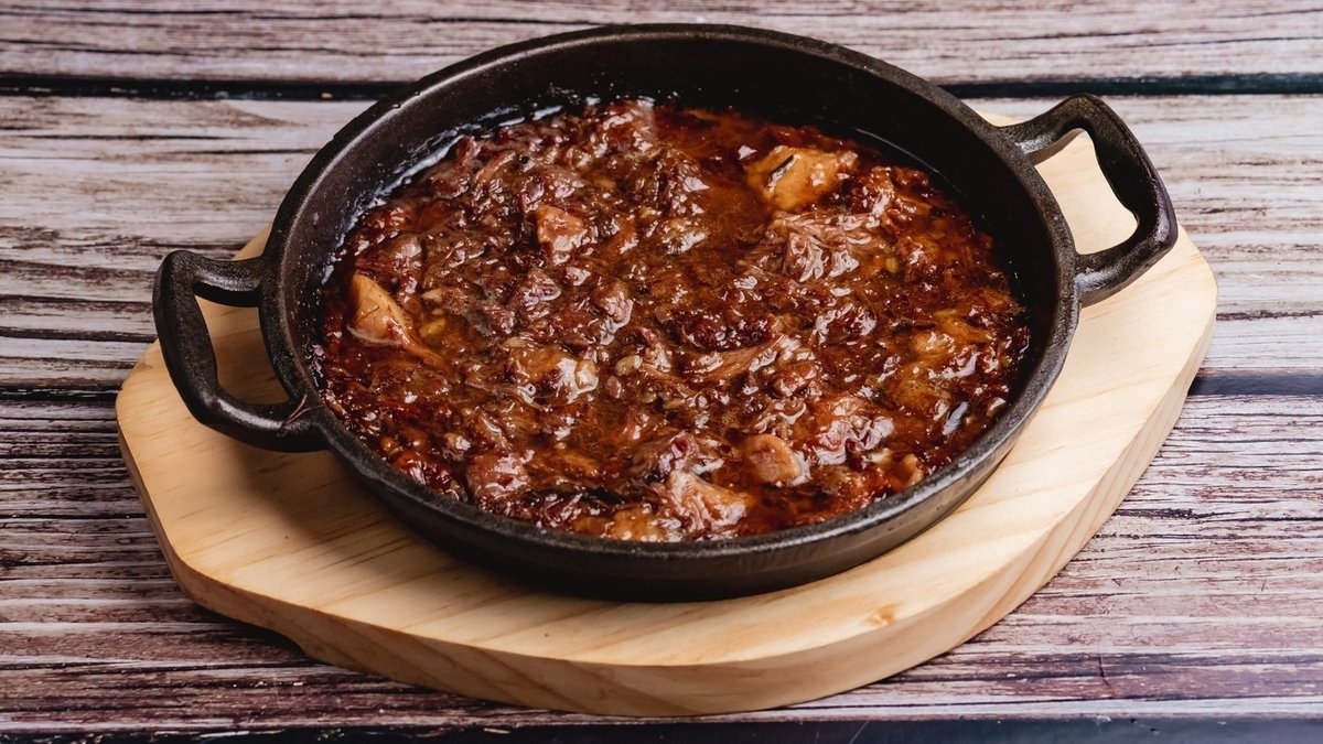 Dana əti, toyuq əti, bolaq bibəri, göbələk, zeytun