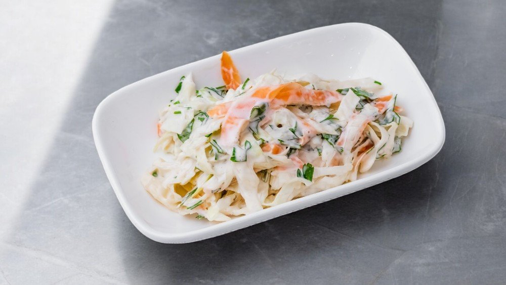 Kartof, toyuq filesi, kök, yumurta, turşu, yaşıl noxud, mayonez, göyərti, xiyar, şüyüd, cəfəri