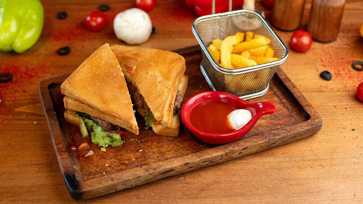 Sous, pomidor, kolbasa, kahı, pendir, kartof fri