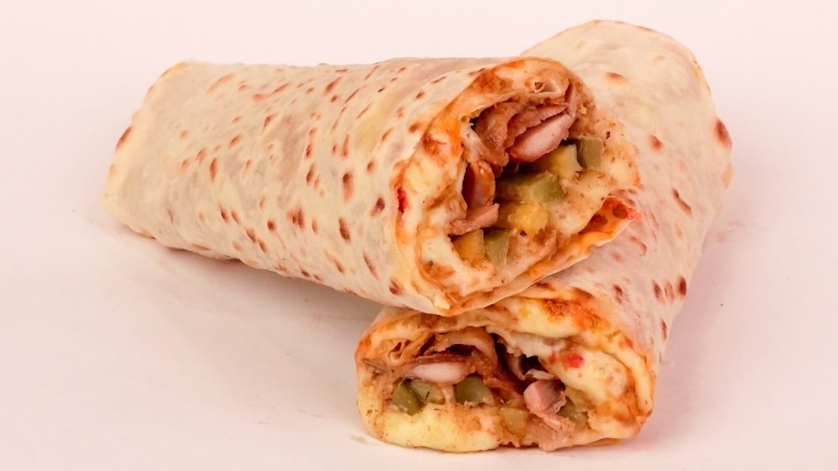 Lavaş, toyuq filesi, aysberq salatı, pomidor, parmezan pendiri, sezar sousu