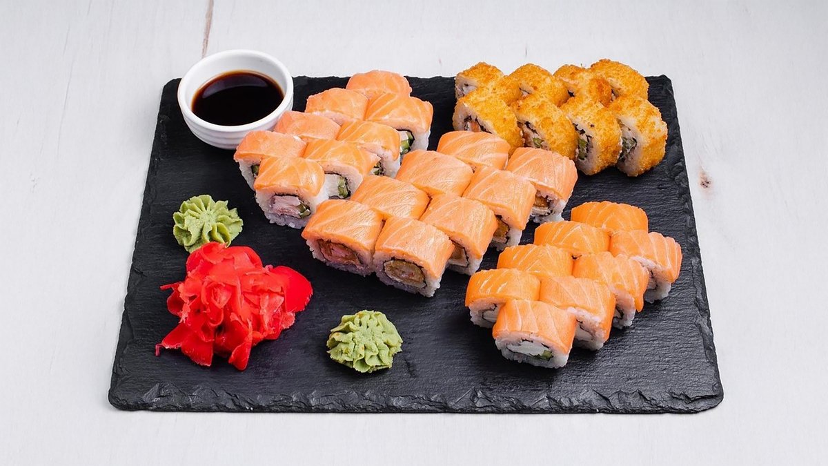 Filadelfiya roll 16-ədəd, Kaliforniya roll 8-ədəd, Alyaska roll 8-ədəd, Kappa maki 8-ədəd, Cheese maki 8-ədəd, Salmon maki 8-ədəd