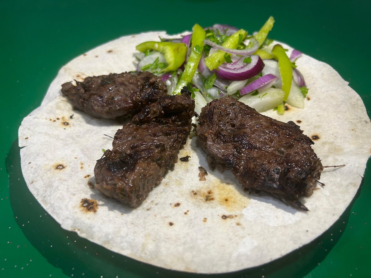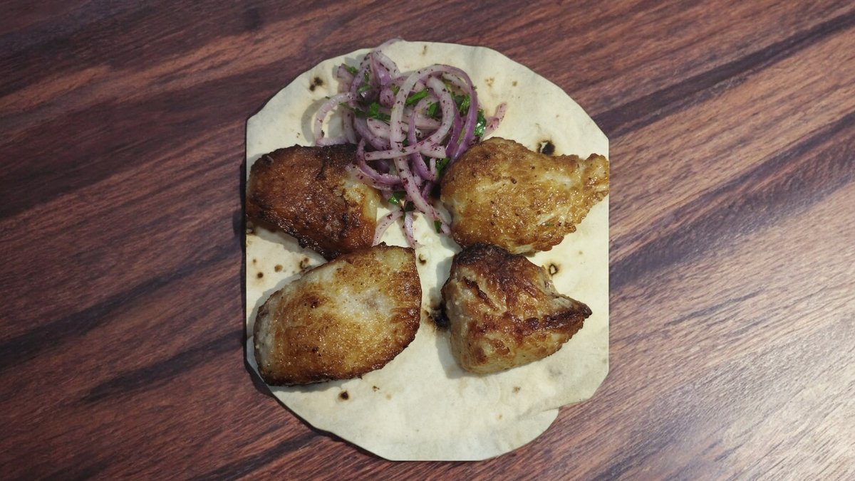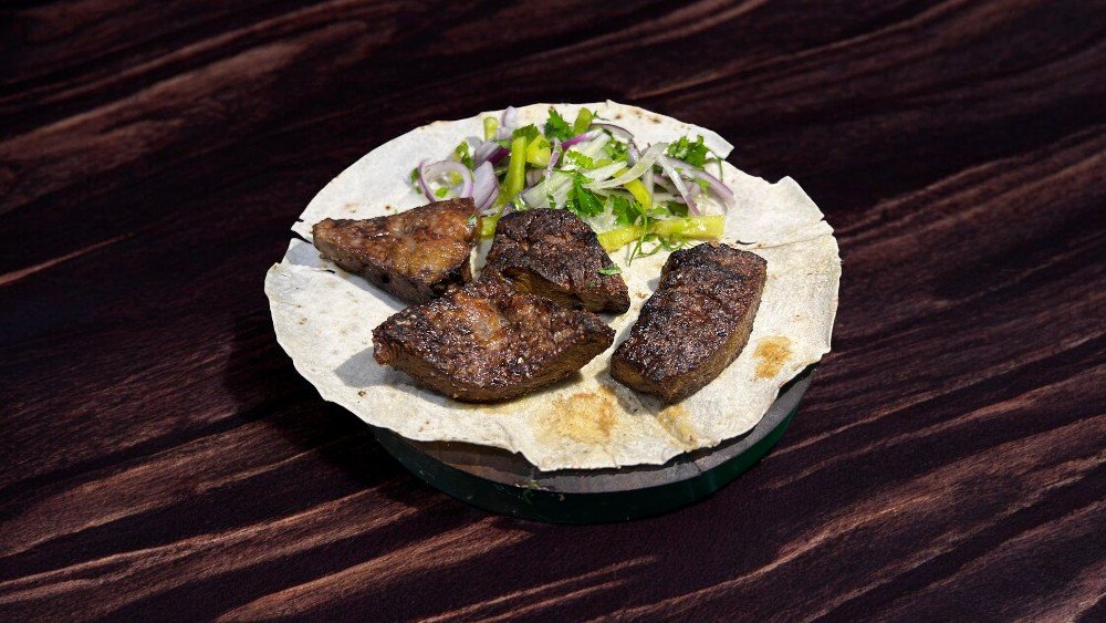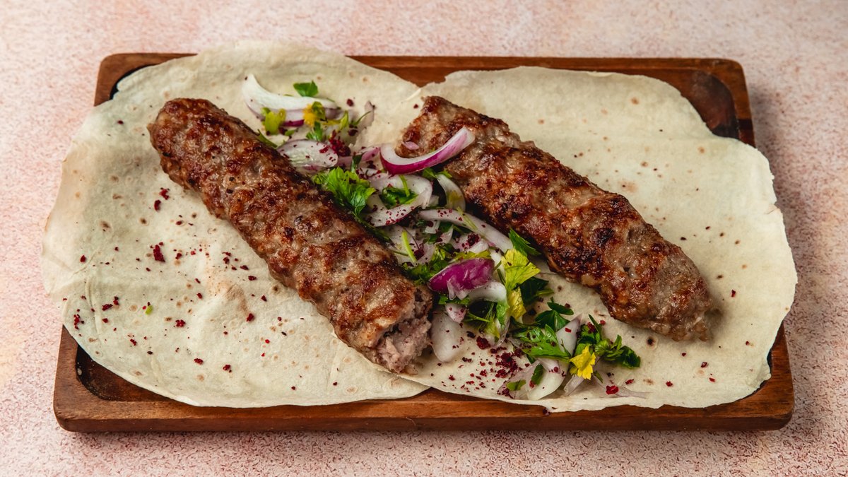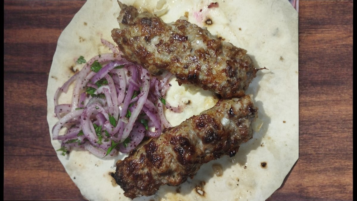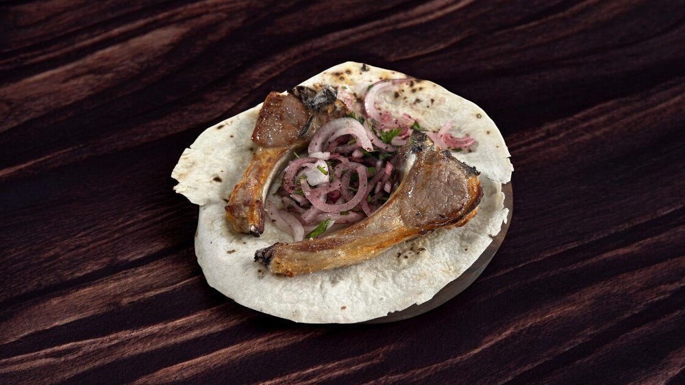 Dana əti, quzu quyruğu, soğan, lavaş.