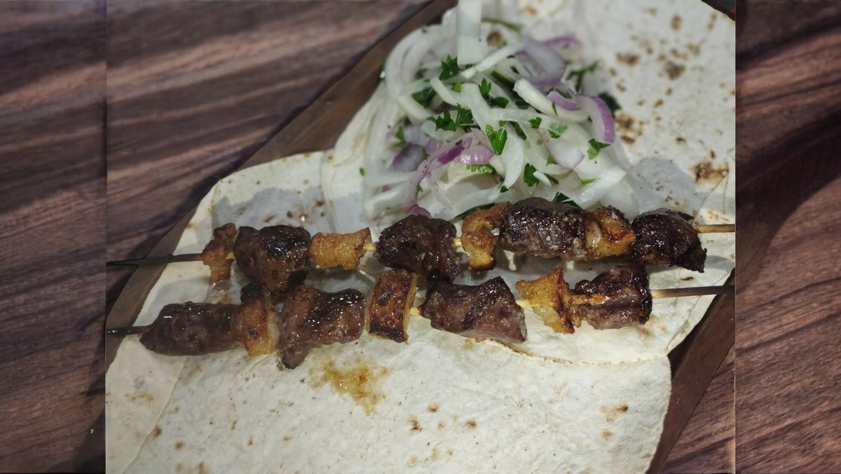 Tikə kabab (quzu), lülə kabab (dana əti), toyuq lüləsi, toyuq kababı, dana ürək ciyəri, pomidor (2 əd), badımcan quyruqla (2 əd), acı bibər