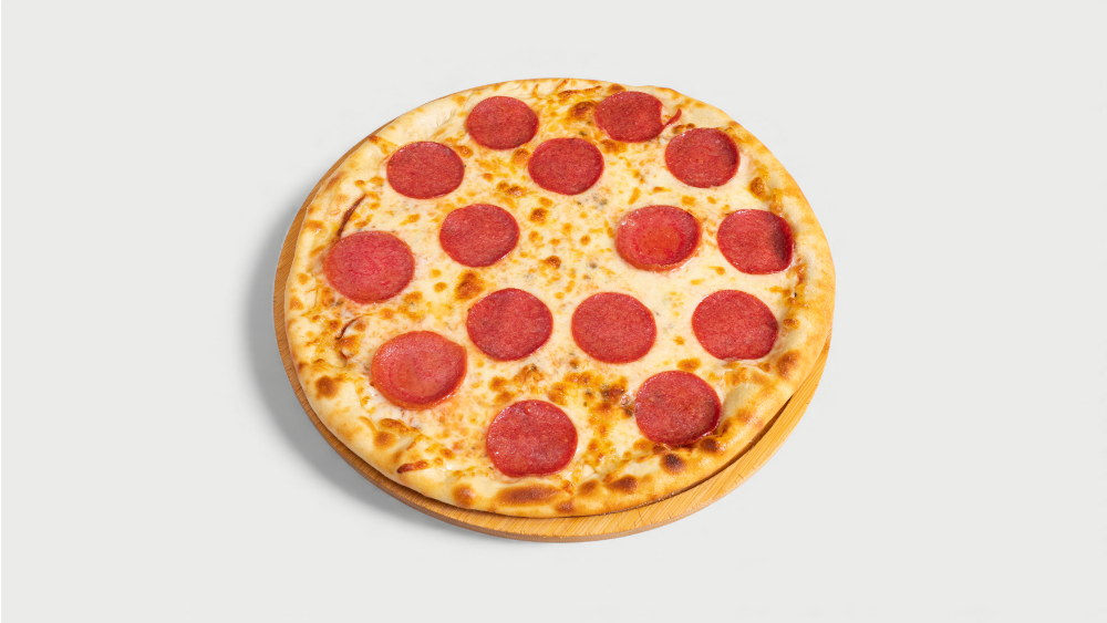 Pizza xəmiri, pepperoni, pendir, pomidor sousu